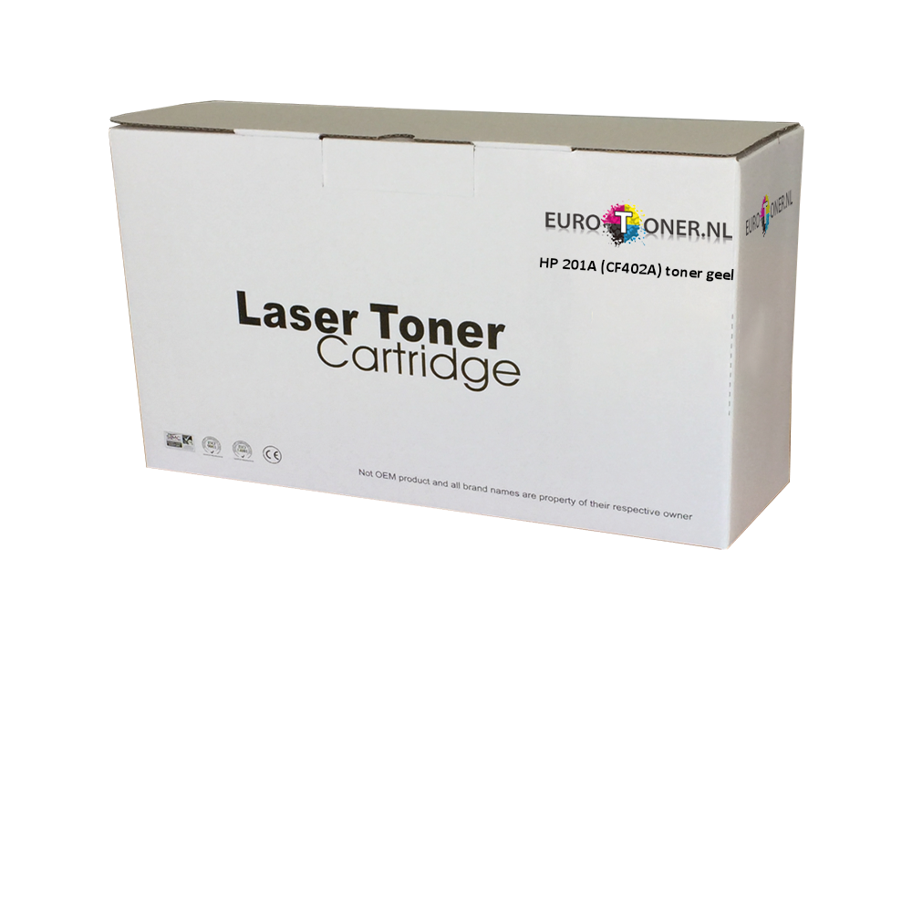 HP 201A (CF402A) Toner Yellow kopenDe HP 201A (CF402A) Toner Yellow van het huismerk van EuroToner is vele malen goedkoper dan het originele product. Zowel de drumunits als toners en inktcartridges worden geproduceerd volgens de ISO9001- en ISO14000-normen. Je kan kwalitatief uitstekende producten verwachten, zodat je vervolgens de toner, inktcartridge of drum in de printer of kopieermachine kan plaatsen.